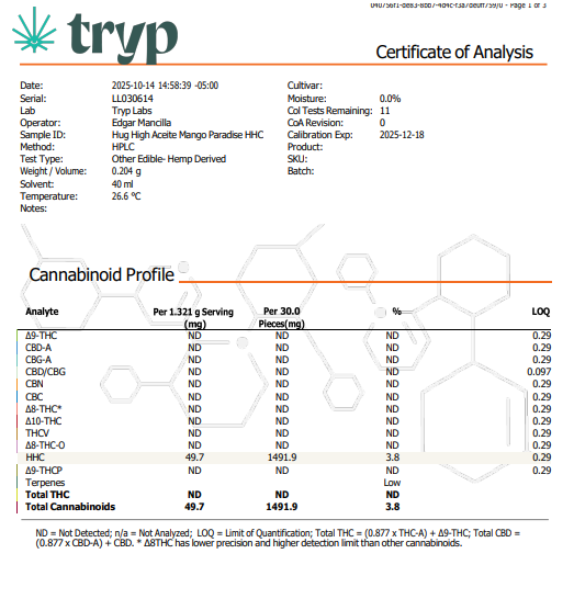 Conforme al marco legal mexicano, su contenido de THC es inferior al 1%.
